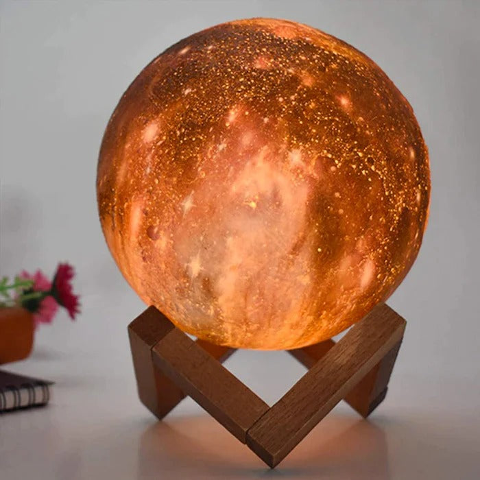 مصباح القمر في المجرة هو إكسسوار إضاءة ساحر ومبتكر يجلب جمال القمر إلى مساحتك الحياتية. مُصنع بدقة، يتميز بنسخة ثلاثية الأبعاد للقمر مطبوعة بتفاصيل سطحية مذهلة. يقدم هذا المصباح إضاءة لطيفة ودافئة تخلق جواً ساحراً في أي غرفة. إنه مثالي لتعزيز ديكور منزلك، مضيفاً لمسة من الجاذبية السماوية لغرفة نومك، أو إعداد أجواء مسترخية في غرفة المعيشة. سواء كمصباح ليلي أو قطعة ديكورية، مصباح القمر في المجرة هو إضافة فريدة وجذابة لديك في الداخل."