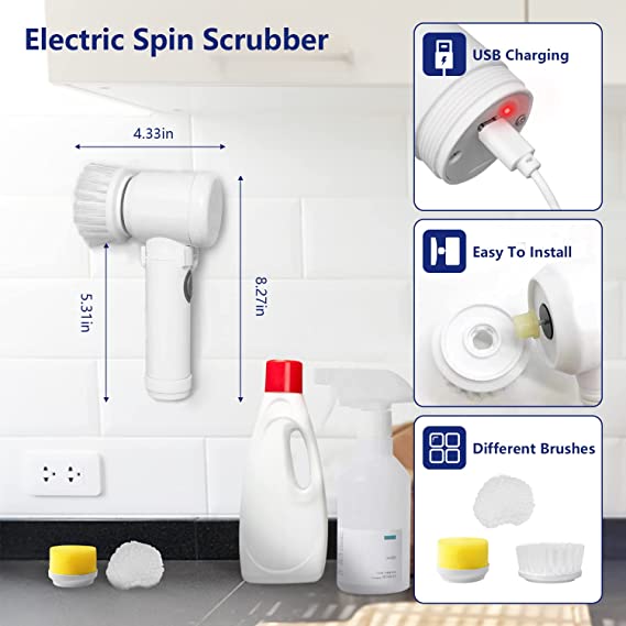 "تحتوي ممسحة الدوران الكهربائية 5 في 1 على 5 رؤوس فرشاة قابلة للتبديل لمختلف السيناريوهات. الفرشاة المسطحة لتنظيف الأسطح مثل أرضيات البلاط والجدران وحمام السباحة؛ الفرشاة الزاوية مثالية لتنظيف الحشوات والحنفيات والحواف؛ فرشاة القماش لتنظيف الأرضيات الخشبية والأثاث؛ والإسفنجة لتنظيف النوافذ. بالإضافة إلى ذلك، يمكنك حتى تلميع وتشحيم سيارتك باستخدام هذه الرؤوس.