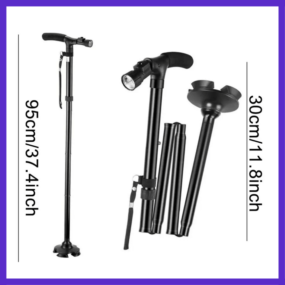 تأتي العصا مزودة بمصابيح LED مدمجة في الجزء العلوي، مما يوفر إضاءة قوية ومناسبة للمشي في الظلام.
