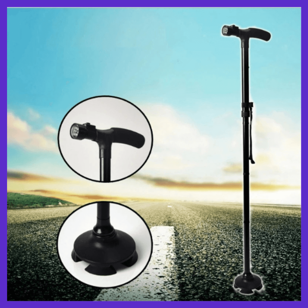 توفر هذه العصا إضاءة LED مدمجة ت وتعزز السلامة أثناء المشي في الظروف غير المناسبة للإضاءة. إليك بعض الميزات :